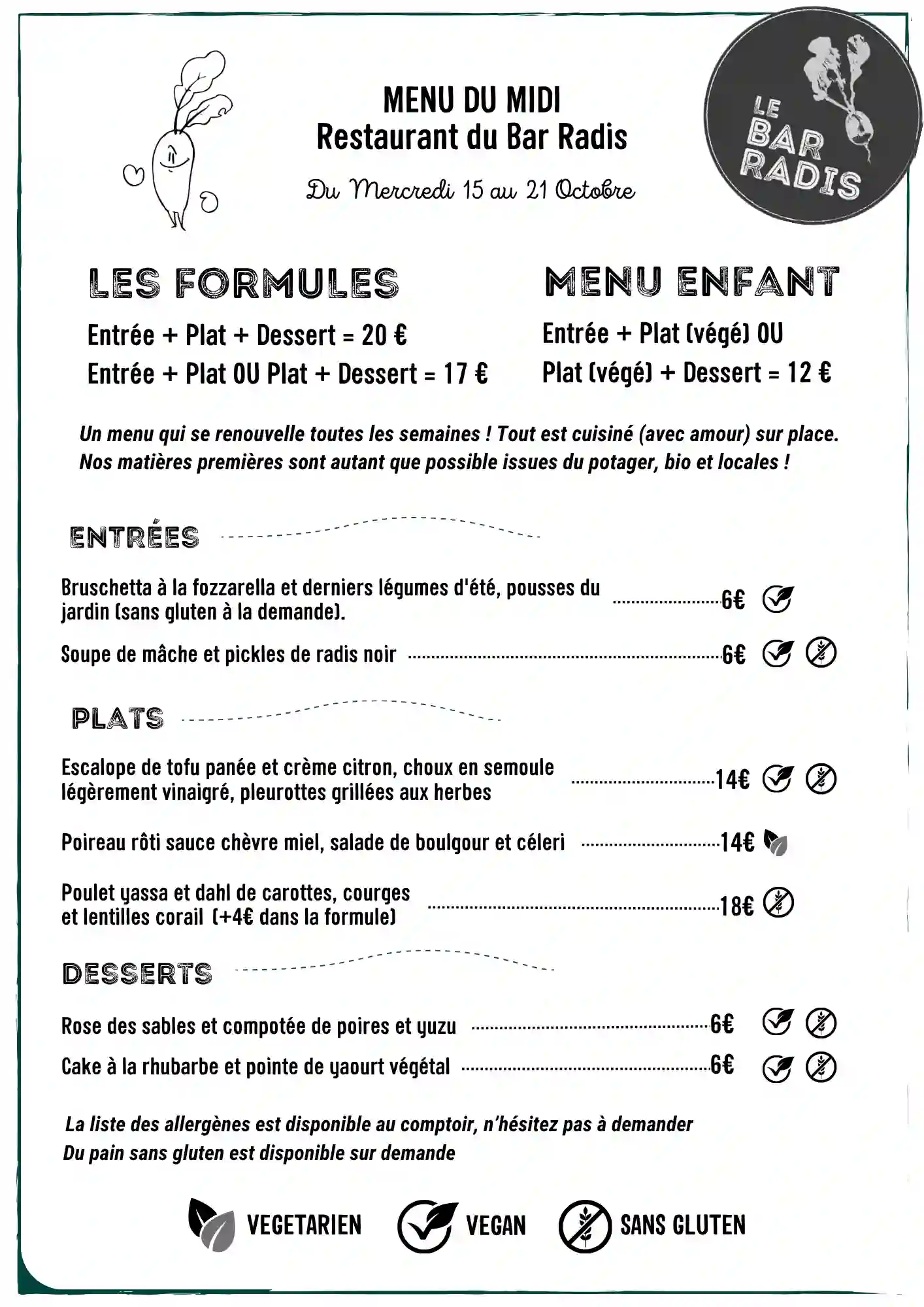 Le Bar Radis vous propose une carte de fidélité unique en son genre : une carte solidaire. Chaque fois que vous achetez 10 repas, vous offrez un repas gratuit à une personne en situation de précarité alimentaire. En choisissant d’utiliser cette carte, vous participez à un geste de solidarité qui fait toute la différence.